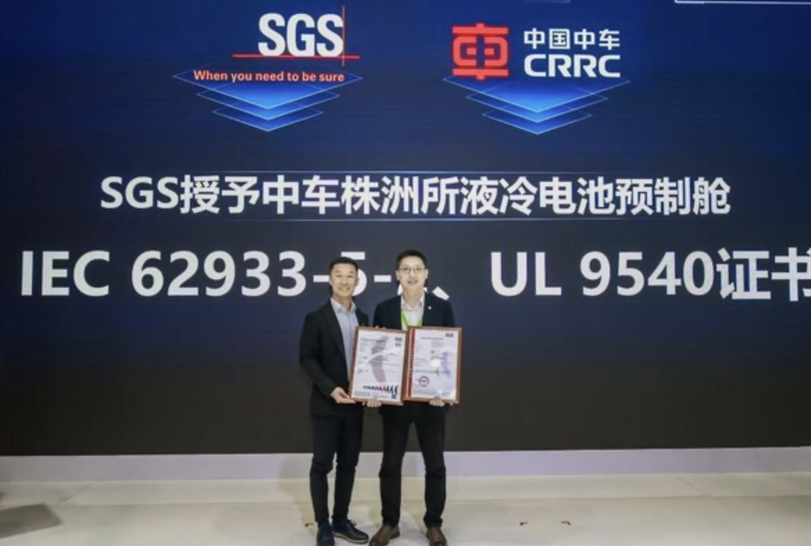 4月10日, SGS携手中车株洲电力机车研究所有限公司(以下简称“中车株洲所”)成功举办“SGS授予中车株洲所液冷电池预制舱IEC 62933-5-2、UL 9540证书”颁证仪式。双项国际权威认证的获得,标志着中车株洲所的5.X储能系统在电池管理、热失控防护、电网兼容性等关键技术领域已达到全球优秀水平。未来,SGS期待携手中车株洲所,共同探索新型储能领域未来发展之路,共绘储能领域智能化发展新篇。
