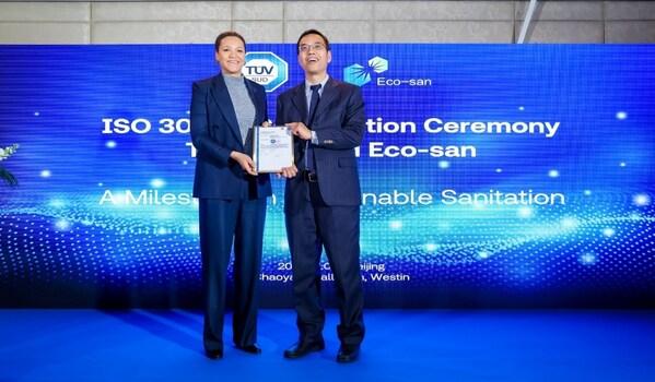 1月8日,全球领先第三方认证检测机构TÜV南德意志集团(以下简称“TÜV南德”)为宜兴艾科森生态环卫设备有限公司(以下简称“艾科森”)一体化水循环生态厕所 b-CRT-1000颁发首张ISO 30500认证证书。这一成就彰显了 TÜV南德在全球范围内推动创新和可持续卫生解决方案的不懈努力,同时也标志着艾科森于生态环卫领域达到全新的、高标准的行业规范水平。TÜV南德首席可持续发展官Céline Bilolo博士,艾科森总经理周小康先生,比尔及梅琳达∙盖茨基金会水源、卫生与清洁项目代理主任Doulaye Kone博士等出席了颁证仪式。