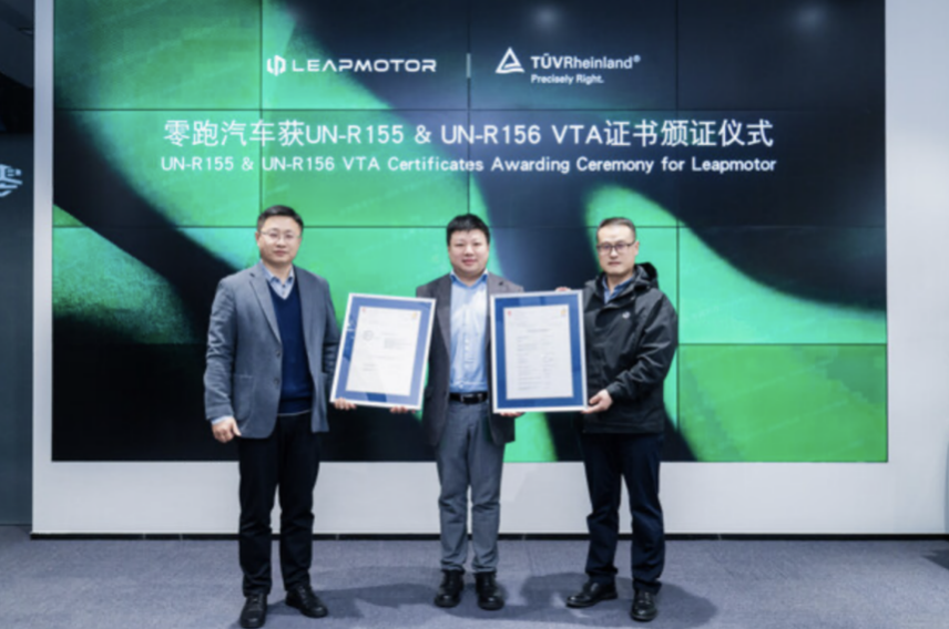 11月26日,浙江零跑科技股份有限公司(简称"零跑汽车")与国际独立第三方检测、检验和认证机构德国莱茵TÜV大中华区(简称"TÜV莱茵")举行颁证仪式。在TÜV莱茵的协助下,零跑T03和C10车型成功获得由卢森堡交通部(SNCH)颁发的UN-R155车辆网络安全及UN-R156车辆软件升级型式认证(Vehicle Type Approval,缩写VTA)证书。这意味着两款车型通过了严格测试和评估,彰显了零跑汽车对于安全与品质的追求和布局全球市场的决心。