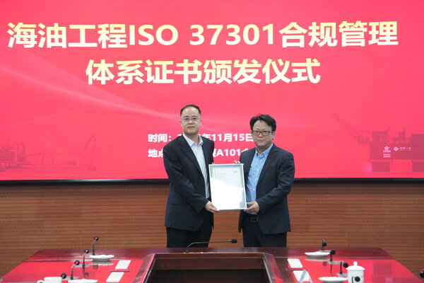 海油工程此次获颁认证,标志着公司合规管理水平已达国家标准及国际标准要求,充分体现了公司对合规风险管控的郑重承诺及依法合规治企的卓越成果。同时,也是海油工程践行"1235"发展策略以及"十四五"战略规划的重要体现。