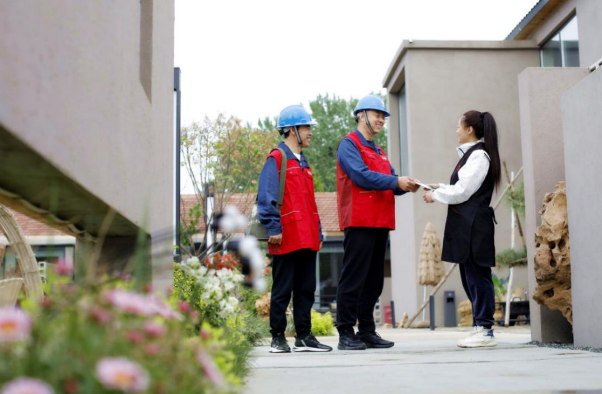 密云公司溪翁庄供电所客户服务人员节前走访民宿客户,指导安全用电。(林一轩摄)