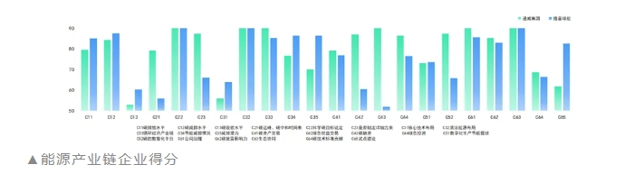 (3)新能源及能源产业链企业,以通威集团、隆基绿能、协鑫集团和晶科能源为代表,在企业碳中和行动方案贡献力、企业减排技术贡献力方面均有上佳的表现。行动方案方面,企业率先加入“科学碳目标”(SBTi)全球倡议,参照科学碳目标(SBTi)的标准制定减排目标,产品碳足迹认证推动绿色供应链发展。减排技术方面,企业积极研发光伏发电关键技术,在颗粒硅、钙钛矿等黑科技领域独具特色,建成光伏发电标杆项目,对能源结构、推动绿色低碳发展,助力实现碳达峰碳中和目标具有重要意义。