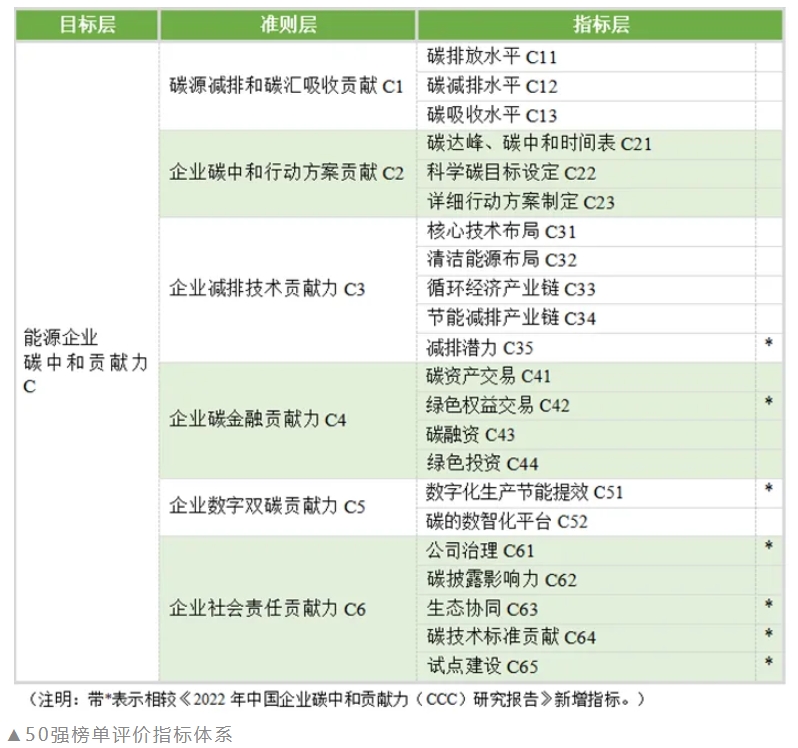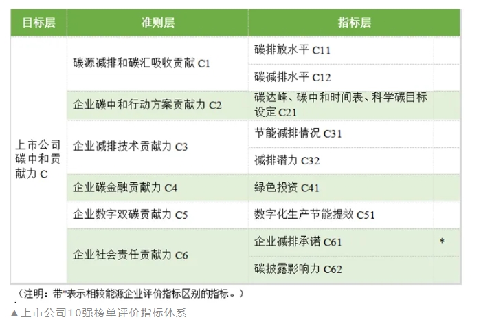 上市公司作为中国经济的重要组成部分,有责任也有义务积极参与减排行动。随着可持续发展观念深入人心,全社会包括资本市场逐渐重视企业的社会责任表现,ESG已经成为评价上市公司企业综合表现和指导投资者的重要标准,影响着企业在社会和市场上的生存与竞争力。上市公司碳中和贡献力评价指标体系的制定,是在能源企业评价指标的基础上结合国际国内对于上市公司的碳管控要求进行去粗取精,得出最终评价指标体系。
