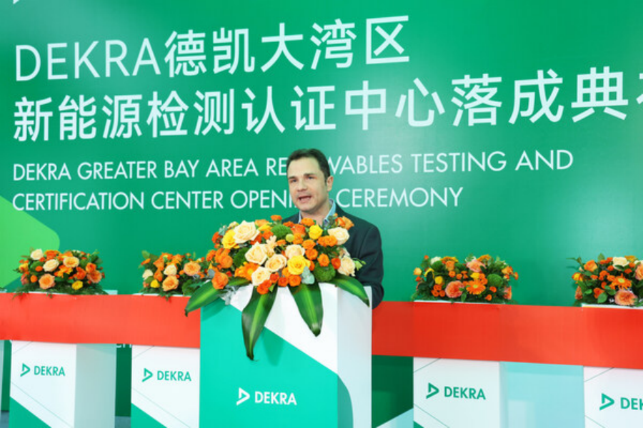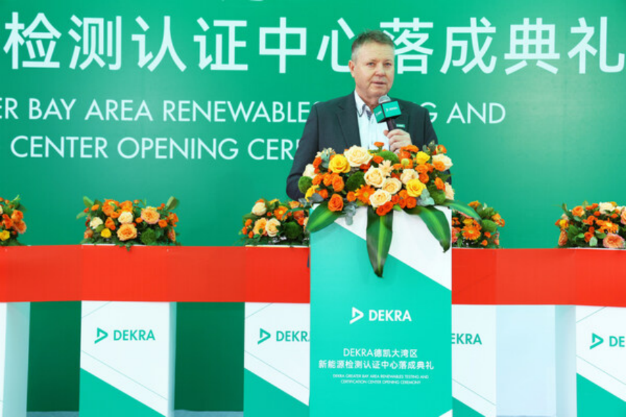 DEKRA德凯亚太区高级副总裁、中国大陆及香港董事总经理Kilian Aviles博士在致辞中提到:“今天很自豪能够再次见证DEKRA德凯在大湾区的持续投资和发展。去年五月,我们曾在此启动了人工智能物联网(AIOT)测试中心。前年,我们实现了医疗、智能家居和零部件测试中心的落成。如今我们再次相聚于此,共同祝贺全新的、领先的新能源领域测试技术的能力扩展。DEKRA德凯在大湾区建立的新能源检测认证中心,致力于推动行业的技术和安全发展,并将重点关注储能系统、电池管理系统以及其他新能源和可持续发展相关服务。该检测认证中心的落成,代表着我们正在实现对突破技术界限,加速培育创新生态系统的承诺。”