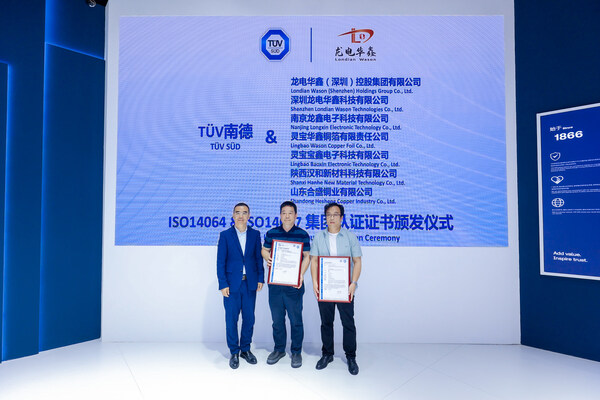 据美通社合作,近日,TÜV南德意志集团(以下简称"TÜV南德")于上海国际碳中和技术、产品与成果博览会(以下简称"2024碳博会")为龙电华鑫(深圳)控股集团有限公司 (以下简称"龙电华鑫集团")及下属六家子公司颁发温室气体核查声明和产品碳足迹核查声明。TÜV南德大中华区管理服务部副总裁汪微波、龙电华鑫集团高级业务经理谢鲲鹏、龙电华鑫集团体系经理伍晓龙等出席了本次颁证仪式。此次证书的获得彰显了龙电华鑫集团在环境管理和碳排放方面的成绩,也体现了TÜV南德以碳管理领域的专业能力,为龙电华鑫集团在铜箔行业实现节能减排目标提供了强有力的支持。