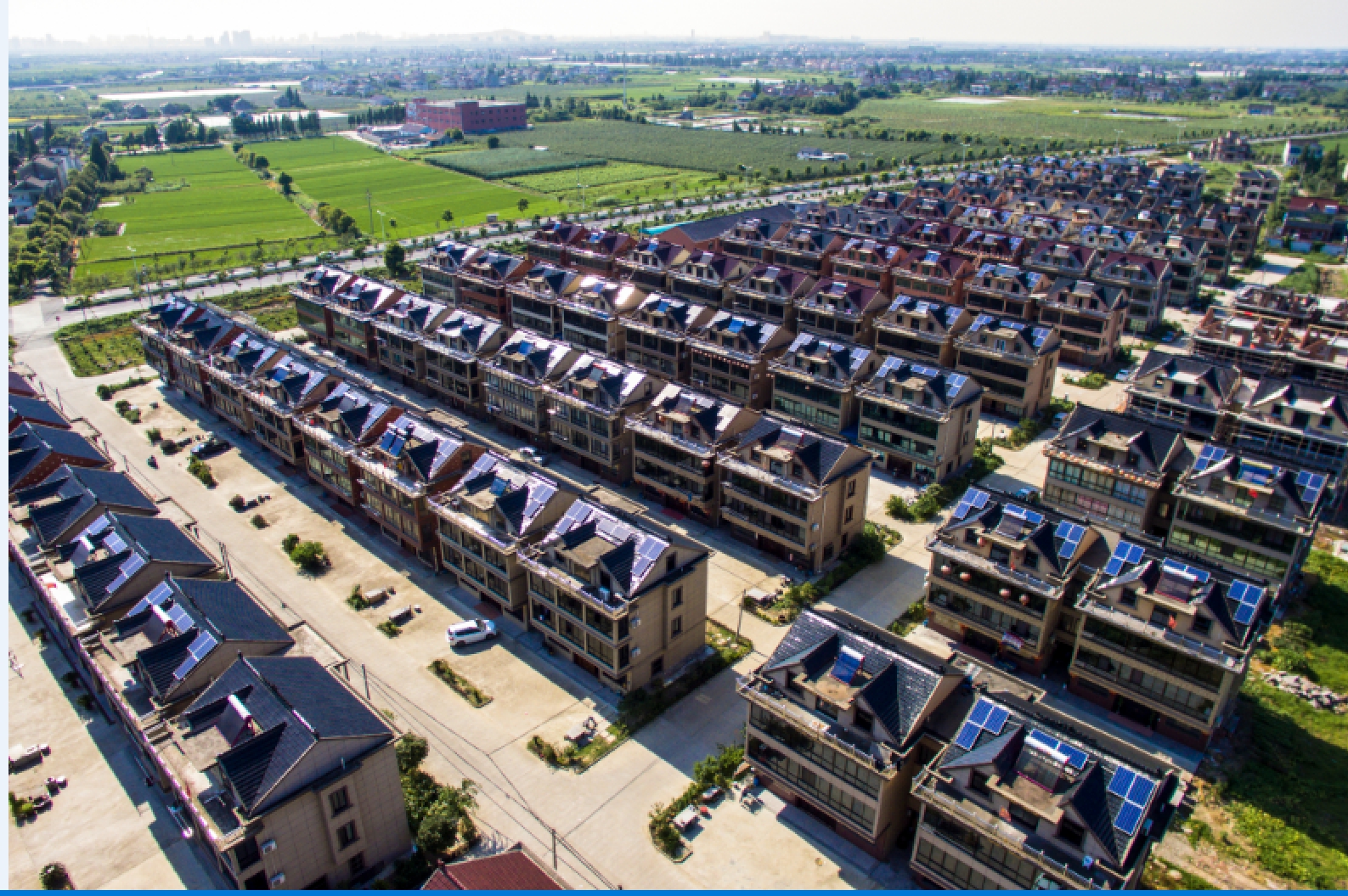 海宁市袁花镇彭墩村,屋顶布满了光伏发电板,这是海宁居民屋顶光伏最密集的村庄。国网海宁市供电公司/供图