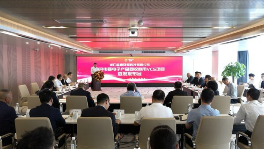 2024年4月2日,全球首个废弃电器电子产品回收利用碳减排项目签发发布会在浙江省杭州市浙江盛唐环保科技有限公司召开。中国物资再生协会会长许军祥、中国物资再生协会秘书长于可利、联想集团电脑和智能设备首席质量官集团副总裁王会文、浙江盛唐环保科技有限公司总经理强毅、华测认证有限公司华东大区总经理赵琨莹以及废弃电器电子产品回收处理企业代表、行业专家,新闻媒体等出席发布会。