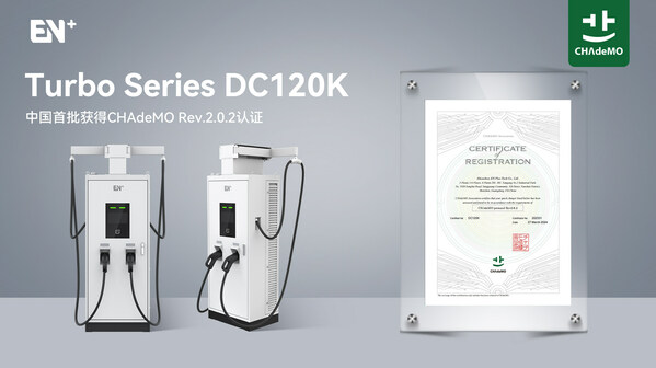 据美通社报道,近日,EN+科技Turbo DC120K系列直流桩产品正式通过日本CHAdeMO机构测试,并获得机构颁发的认证证书。由此,EN+科技正式成为中国首批荣获CHAdeMO最新充电标准Rev.2.0.2认证的充电桩厂家。