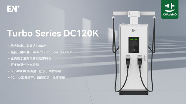 EN+科技此次推出的Turbo系列 DC120K直流桩最大输出功率为120kW,其充电效率远高于日本市场传统的快速充电桩(50kW)。该产品兼容CHAdeMO Rev.2.0.2最新认证标准、配置以太+4G多种通讯方式、支持OCPP 1.6 Json通讯协议,产品采用模块化设计,并支持远程运维,IP55防尘防水等级,IK10防护等级,增强产品耐环境性能。同时,产品设计采用枪线助力、POS终端等可定制化配置选择,来实现符合本土需求的充电产品。