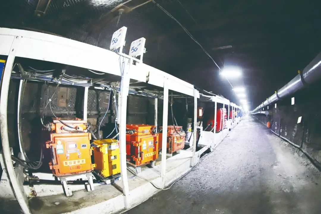 ▲图为阳煤集团新元公司井下巷道中布置的5G基站。