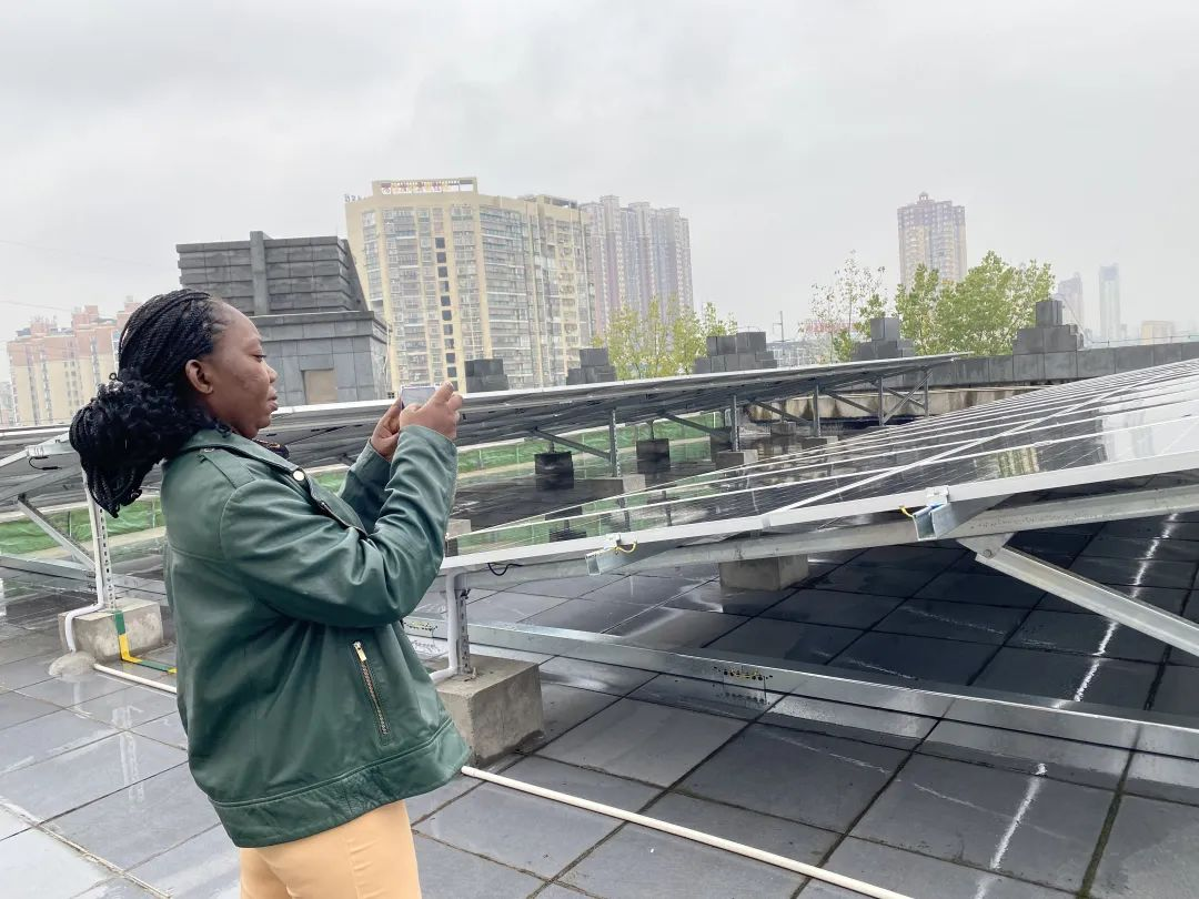 ▲2023“一带一路”媒体合作论坛联合采访团团员拍摄分宜行政服务中心屋顶光伏项目。