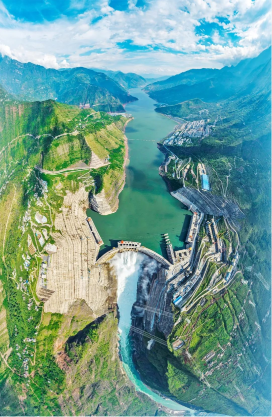 从空中鸟瞰白鹤滩水电站,两岸高耸的峡谷间,一江碧水以一泻千里之势奔向下游的溪洛渡。极目远眺,全长2080公里的白鹤滩-江苏±800千伏特高压直流输电工程横贯东西,仅需7毫秒,西南的水电即可抵达江苏的工厂。