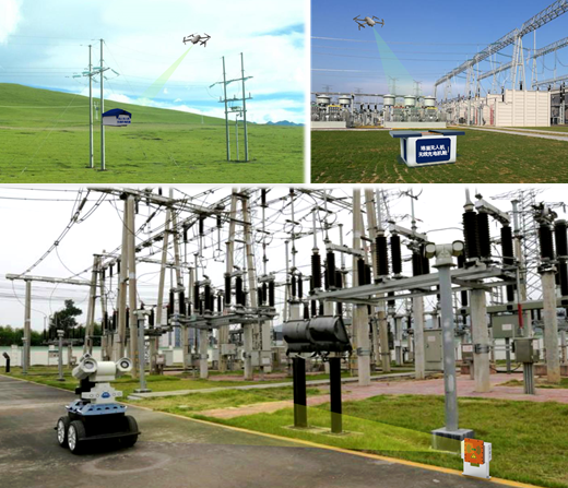 新型电力系统实现全面智能化进程中,需要大量使用无人机、机器人等智能巡检装备。然而,现阶段由于供电方式的制约,无论是无人机还是机器人,均无法实现远距离、超视距、超续航里程的自主作业,不能满足未来新型电力系统高度智能化、无人化发展需求。利用无线电能传输技术,一方面,在电力线路走廊部署海量共享无人机无线充电平台,实现无人机无限续航;另一方面,在各电压等级的变电站、开关站、换流站、发电厂等大中型电力供电枢纽部署机器人静态无线充电站和动态无线供电线路,通过静态和动态无线充电相结合的方式,为巡检机器人提供无差别、全天候的电能补给。通过供电技术的变革,实现智能巡检装备的升级换代。