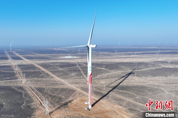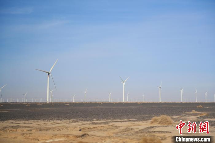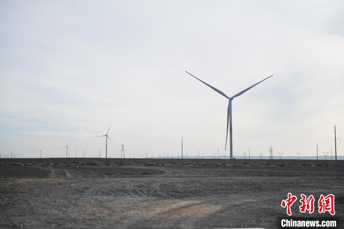 1月6日,甘肃省酒泉市瓜州县皓达风电有限公司8万千瓦新风机试验场项目正在运行。中新社记者 李亚龙 摄