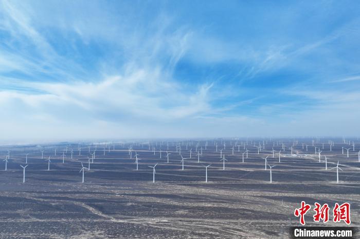 1月6日,甘肃省酒泉市瓜州县风力发电项目正在运行。(无人机照片)中新社记者 李亚龙 摄