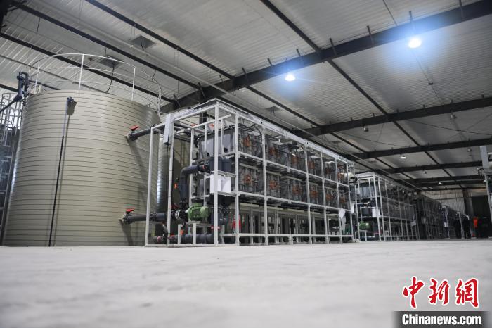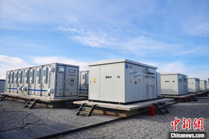 1月6日,甘肃省酒泉市瓜州县寰泰风电有限公司瓜州北大桥白杨10万千瓦风力发电项目储能系统正在运行。中新社记者 李亚龙 摄