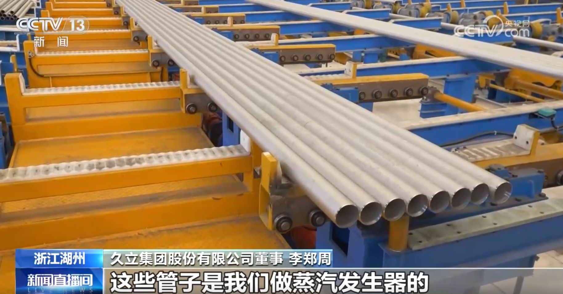久立集团股份有限公司董事李郑周向记者介绍:“这些管子是做蒸汽发生器的设备厂家向我下单,最后做成蒸汽发生器,供到我们投资的核电站上去的。”