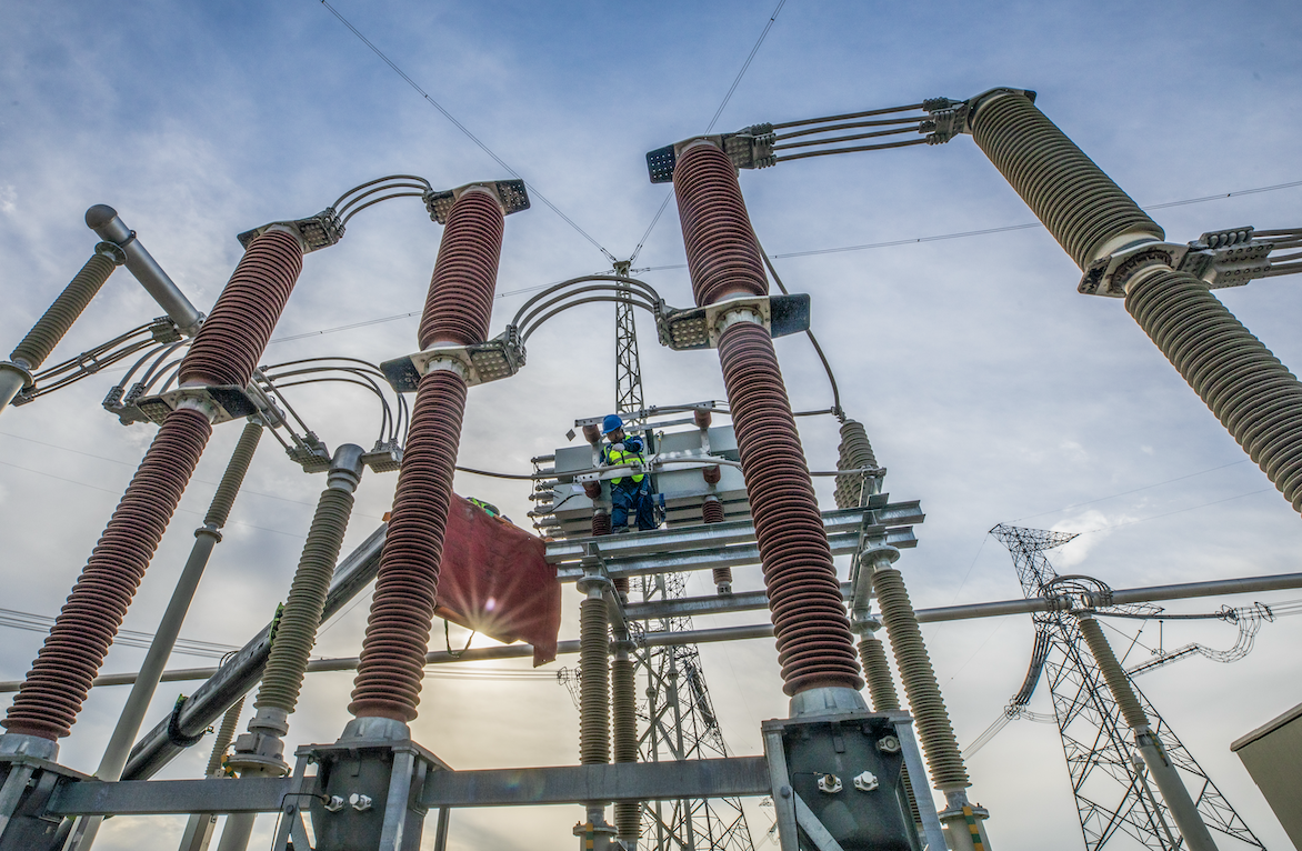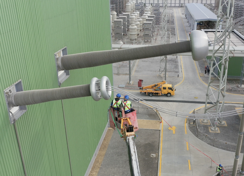 9月22日,±800千伏扎鲁特换流站开展极1穿墙套管接头回路电阻测量工作。(摄影:孙万明)