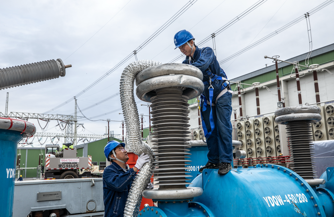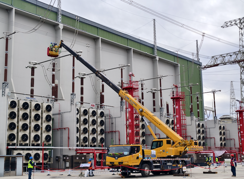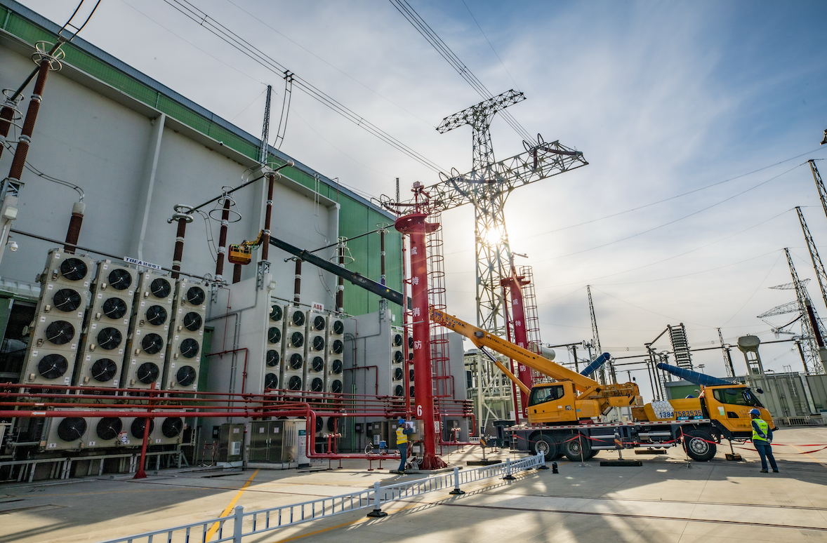 9月22日,±800千伏扎鲁特换流站开展极1低端换流变引线拆引工作。(摄影:孙万明)