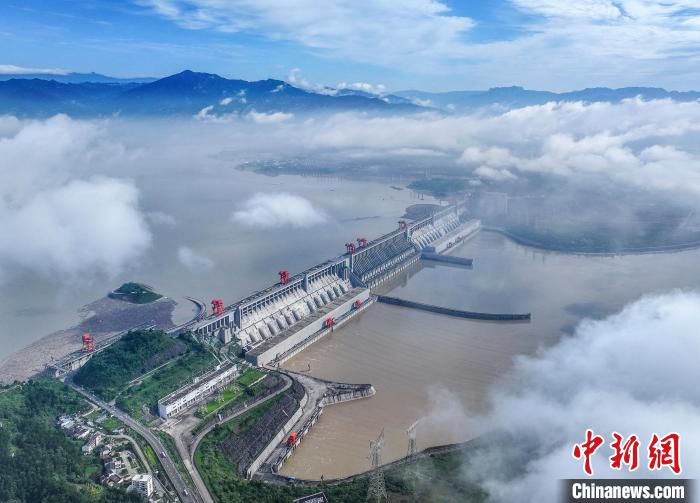 7月31日起,三峡大坝关闭泄洪孔,按发电机组满发出力对应流量下泄。(无人机照片)王罡 摄
