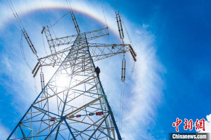 资料图为电力施工人员在西藏阿里联网工程开展铁塔检修作业。赵清鹏 摄