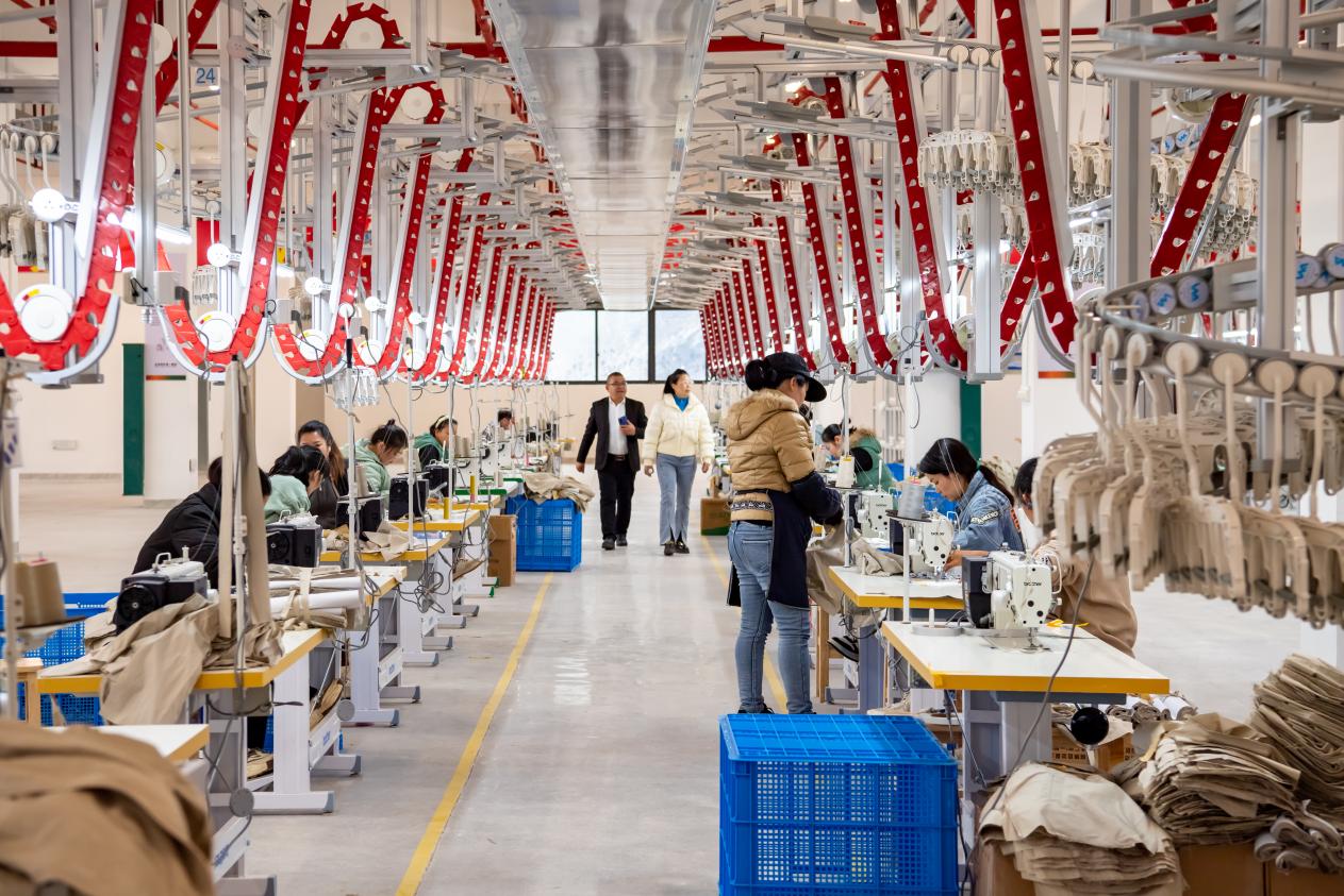 中国大唐积极引进战略合作伙伴在广西大化建成唐优服装厂,让脱贫群众在家门口当上产业工人。