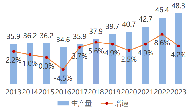 我国能源供应能力显著增强。2023年一次能源生产总量达到48.3亿吨标准煤,同比增长4.2%。非化石能源发电实现新突破,2023年非化石能源发电装机容量达到15.7亿千瓦,占比达到53.9%。其中,风电、光伏装机突破10亿千瓦。能源储运基础设施进一步完善,电力输送通道不断完善,油气储运设施持续加强,新型储能、抽水蓄能规模再创新高。