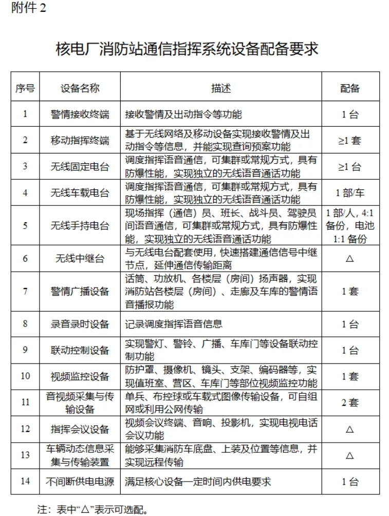为进一步加强核电厂消防安全管理,规范核电厂消防站建设,根据《中华人民共和国消防法》《核电厂消防安全监督管理暂行规定》等有关规定,我局制定了《核电厂消防站建设暂行规定》,现印发给你们,请遵照执行。已建成核电厂消防站不满足本规定要求的,应在2025年12月底前完成整改,并经核电集团组织检查后向国家能源局报告。