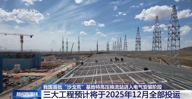 新疆巴里坤、宁夏中宁、甘肃庆阳特高压换流站,是我国正在建设的“沙漠、戈壁、荒漠”新能源基地首批三大特高压外送通道送出站。经过一年的建设,昨天(1日),三大工程已进入最为关键的电气设备安装阶段,预计将于2025年12月全部投运,将为西北地区新能源外送打下坚实基础。