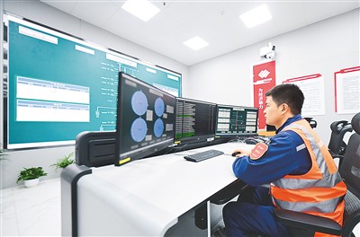 4月1日,玛尔挡水电站工作人员在中控室内值守。