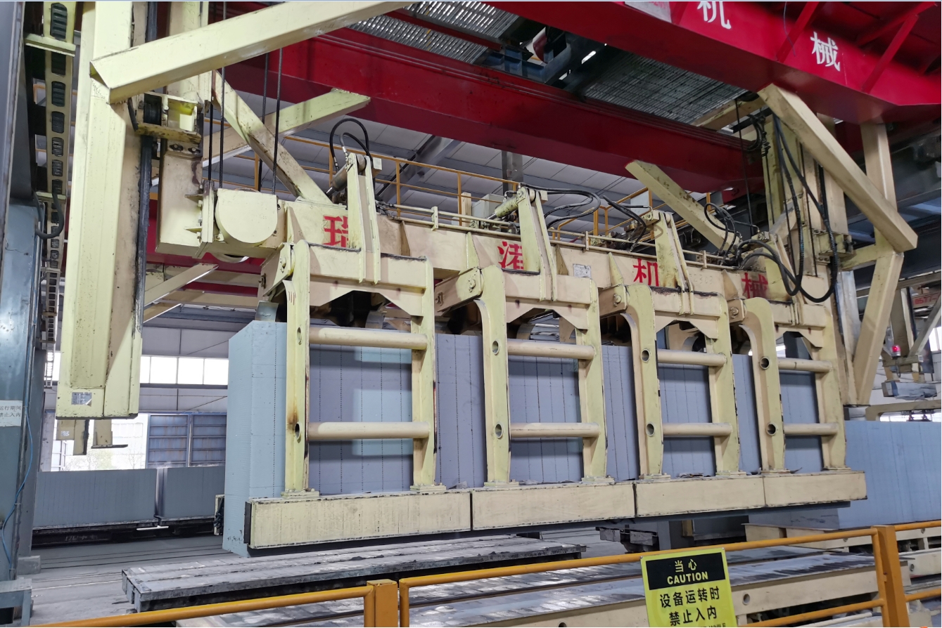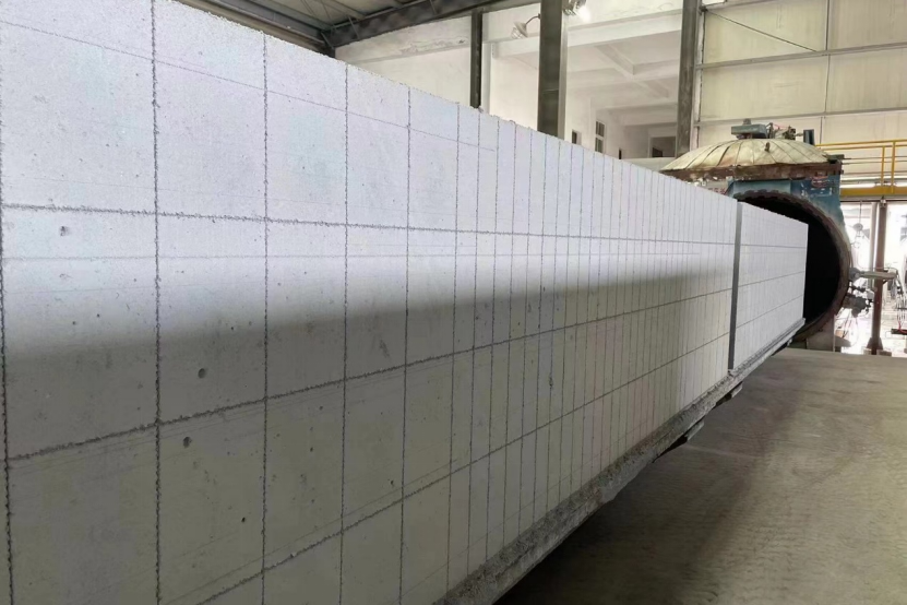 项目矿化区内,刚刚出釜的加气砌块砖实验成品整齐堆放在出釜车间。张威/摄