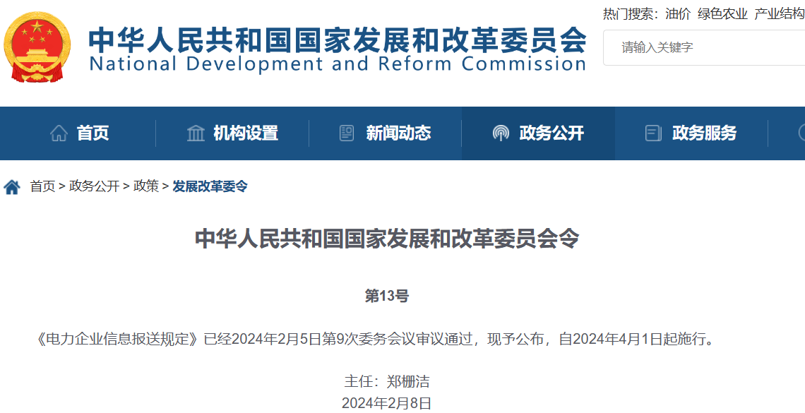 3月18日,国家发展改革委下发《全额保障性收购可再生能源电量监管办法》(以下简称《办法》)。《办法》适用于风力发电、太阳能发电、生物质能发电、海洋能发电、地热能发电等非水可再生能源发电,水力发电参照执行。《办法》自2024年4月1日起施行。