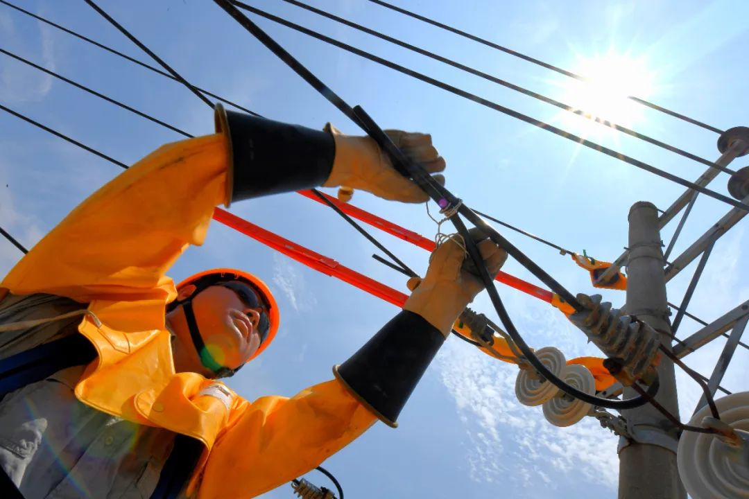 ▲国网湖北电力员工在烈日下开展带电作业,及时消除线路缺陷。图/鄂殿