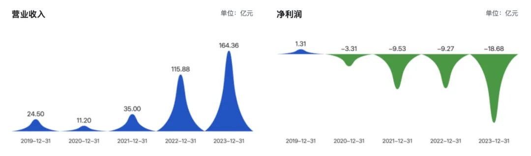作为软包电池龙头企业,孚能科技的业绩面却不容乐观。2020年至2023年,孚能科技分别实现营业收入11.2亿元、35亿元、115.88亿元、164.36亿元;归母净利润-3.31亿元、-9.53亿元、-9.27亿元、-18.68亿元。上市四年以来,孚能科技已累亏40.79亿元。