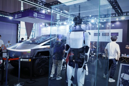 人形机器人展区中,特斯拉展示了Optimus二代人形机器人,具备28个自由度,包括手部的11个自由度,使其能够操作工具并执行有用任务。