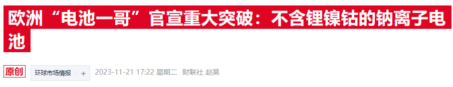 去年,Northvolt宣布公司钠离子电池技术在能量密度方面取得了重大突破,其研制的钠离子电池峰值能量密度超过每公斤160瓦时,并且不含锂、镍、钴和石墨。