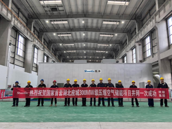 4月9日9时,世界首台(套)300兆瓦级压气储能电站湖北应城300兆瓦级压气储能电站示范工程首次并网一次成功,创造了3项世界纪录,这标志着我国在大功率压气储能技术领域取得里程碑式突破,达到世界领先水平。西安陕鼓动力股份有限公司(以下简称“陕鼓”)作为核心技术方案提供商和深度参与建设者,以其创新研发的“轴流+离心,多缸串联”压缩空气储能方案,为这一重大工程的成功发电及多项世界纪录创造作出了重要贡献。