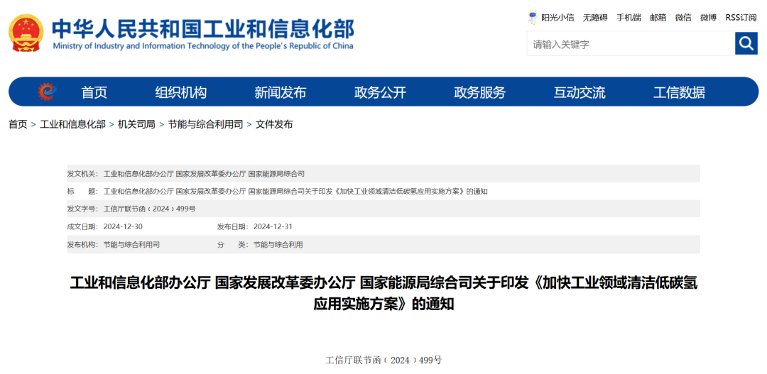 工业和信息化部办公厅 国家发展改革委办公厅 国家能源局综合司关于印发《加快工业领域清洁低碳氢应用实施方案》的通知