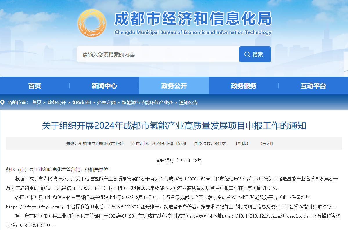 8月6日,成都经信局官网发布关于组织开展2024年成都市氢能产业高质量发展项目申报工作的通知。可申报内容包括降低氢气存储企业成本、降低氢气运输成本、支持加氢站建设、加氢站运营补贴、扩大产业链关键零部件应用规模等15个项目,申报周期范围为2023年1月1日至2023年8月9日,单项最高奖励达1000万元。
