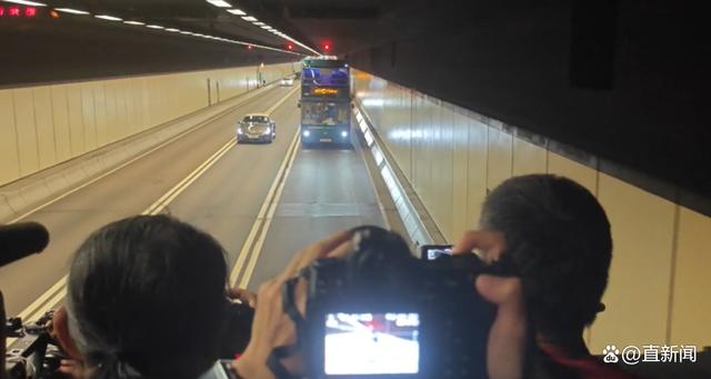 香港首辆氢能大巴今日在隧道中行驶。图源:香港“点新闻”视频截图