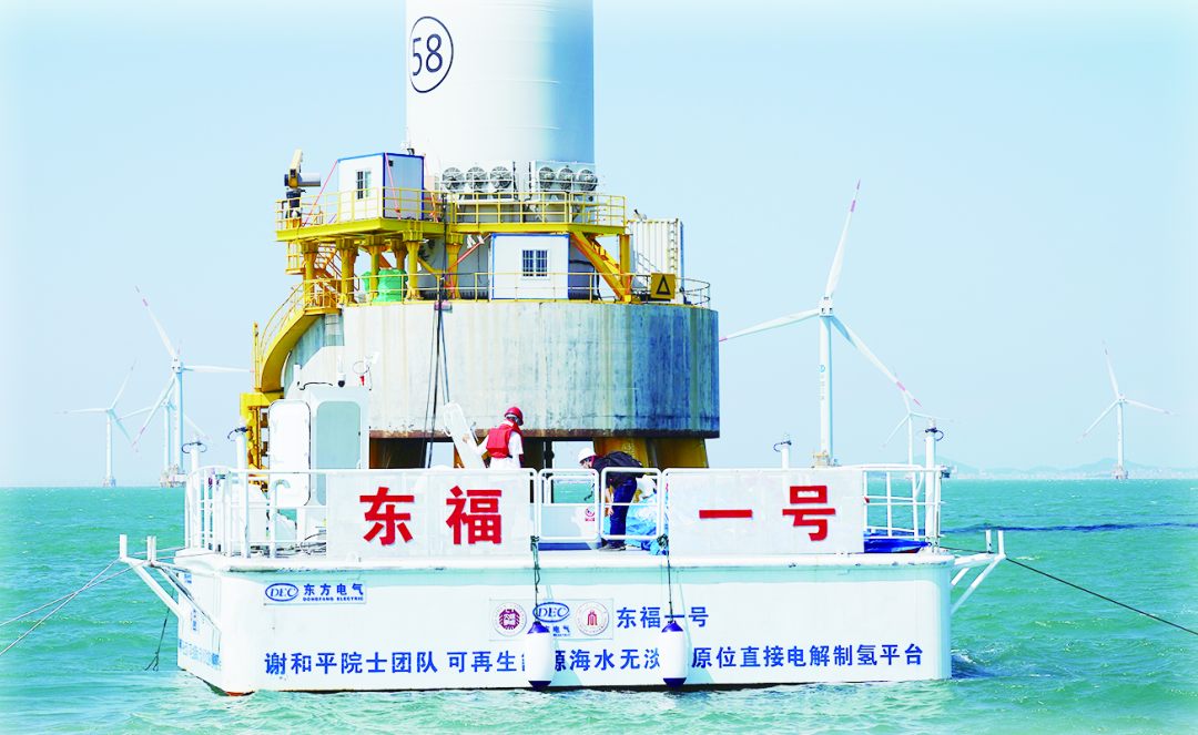 近日,东方电气集团与深圳大学/四川大学谢和平院士团队合作,首次实现海上风电与海水直接电解制氢一体化,在大海中利用海上风电驱动海水制氢。