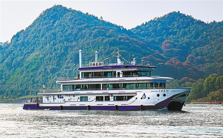 氢燃料电池动力示范船“三峡氢舟1”号在长江上航行。(三峡集团供图)