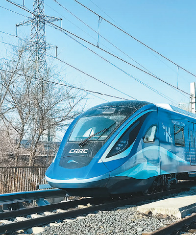 中国首列氢能源市域列车在位于长春的中车长客试验线进行运行试验。