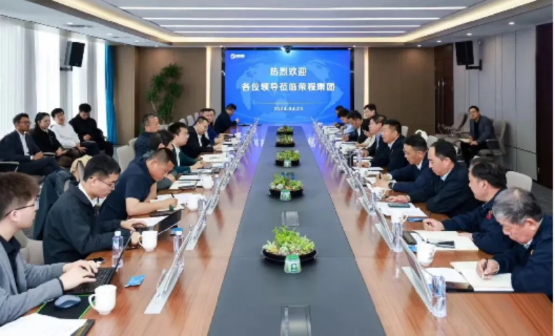 4月23日,山西鹏飞集团副总裁郑梓豪带队前往天津荣程集团,就产业发展与合作进行座谈交流。天津市发改委副主任孙文秀,天津市生态环境局总工程师孙韧,天津市津南区副区长薛彤,荣程集团董事、副总裁、荣程新能集团董事长张立华出席,荣程集团党委副书记、荣程钢铁集团党委书记柴树满,荣程集团副总裁、荣程钢铁集团副总经理陈丰和鹏飞集团副总裁田振国参加。
