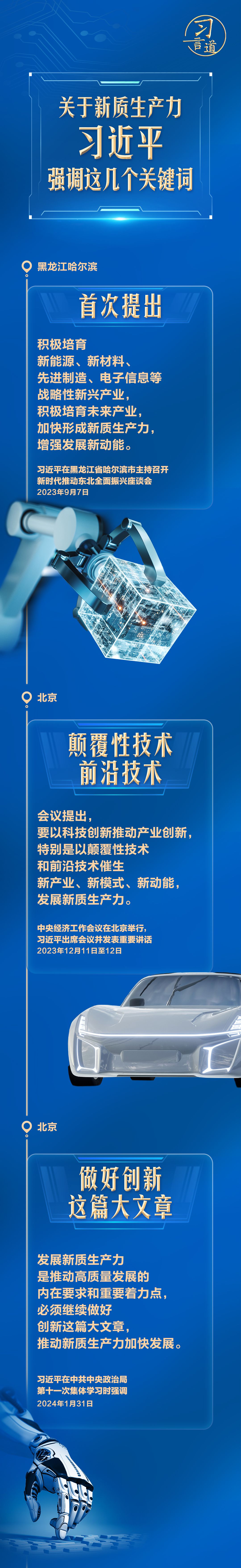从去年9月在黑龙江考察时首次提出,到今年1月在中央政治局第十一次集体学习时系统阐述,再到此次两会期间强调,习近平多次谈到新质生产力。让我们沿着总书记的足迹,一起研读。