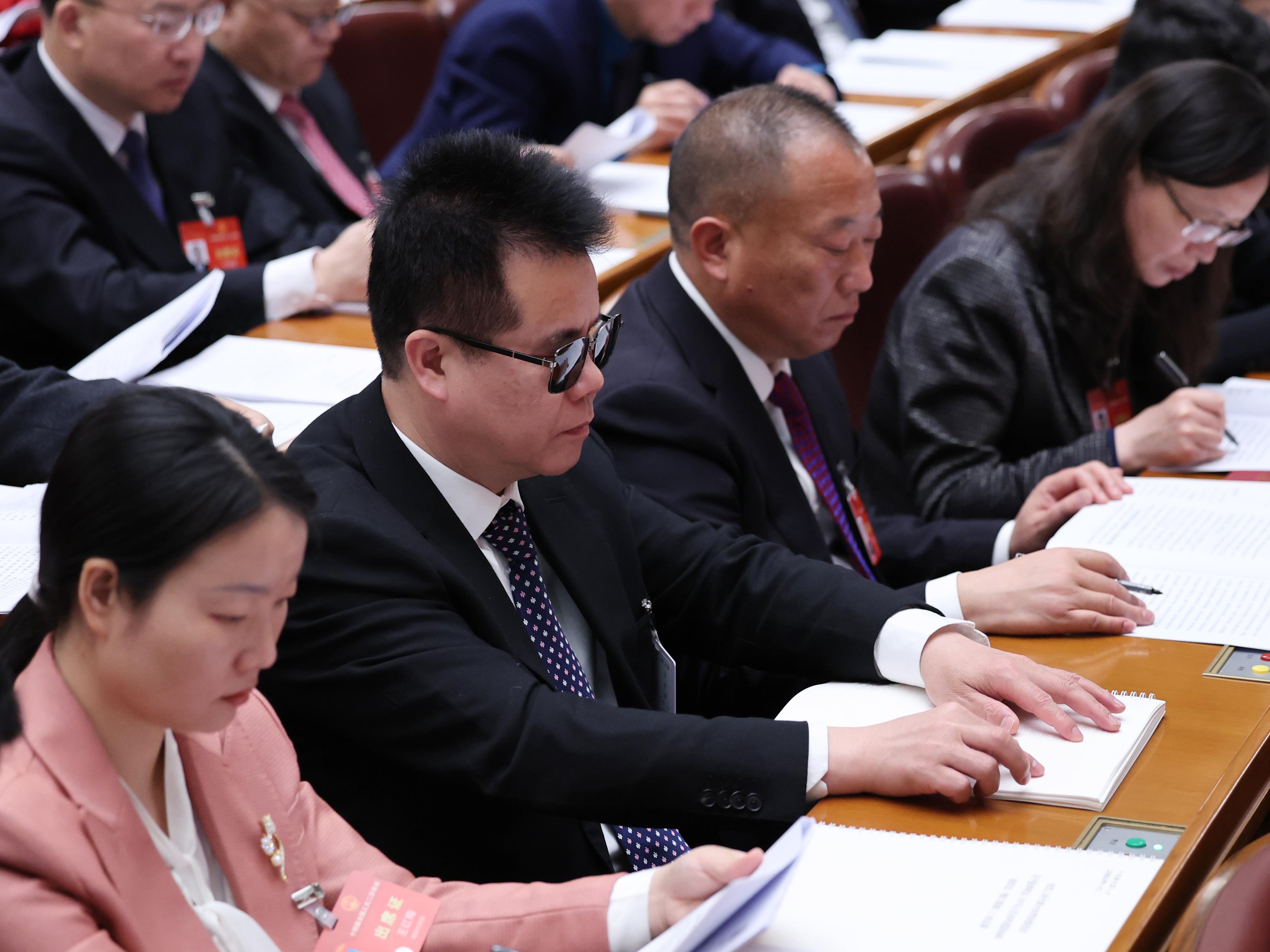 王永澄代表一边认真聆听报告,一边用双手仔细摩挲着这份更显厚重的文件,难掩激动之情。