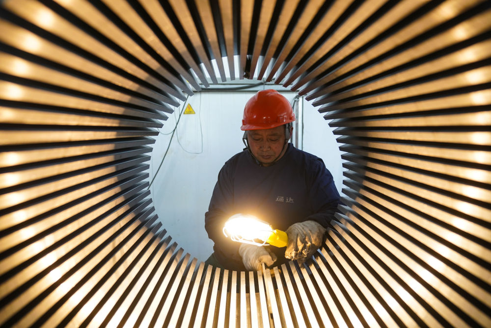 2023年2月16日,工人在江苏省南通市通州区兴仁镇辖区的专精特新“小巨人”企业南通通达矽钢冲压科技有限公司生产车间忙碌。2023年,江苏省科技型中小企业达9.4万家,新获评国家专精特新“小巨人”企业795家,数量均居全国第一。