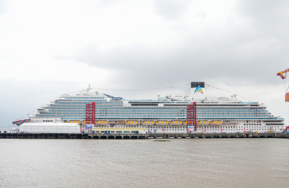 这是2023年11月4日拍摄的国产大型邮轮“爱达·魔都号”。当日,我国国产首艘大型邮轮“爱达·魔都号”正式命名交付。