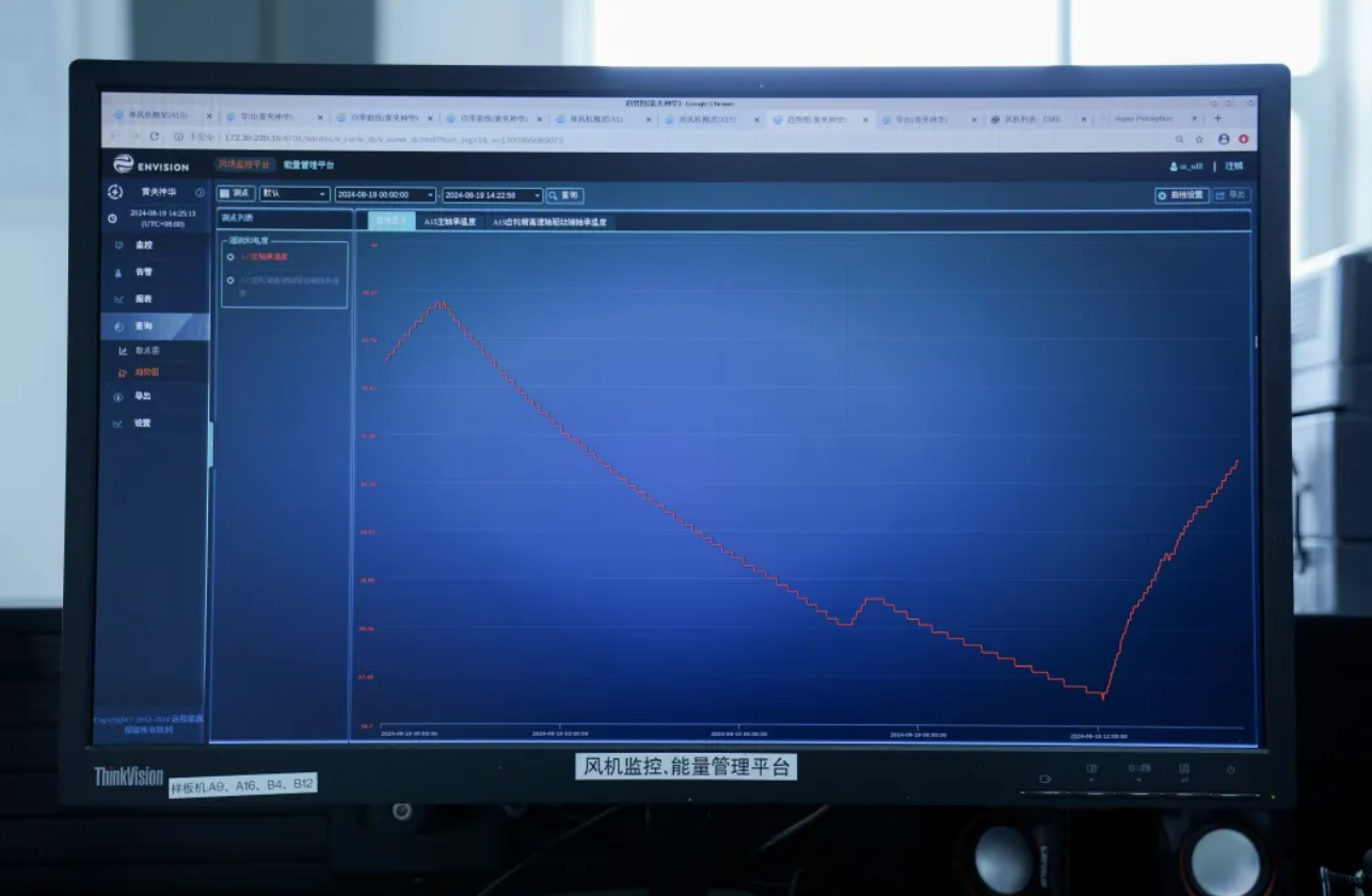 图为乐陵风电场场站监测终端的远景自研主轴承运行温度曲线。远景能源/供图