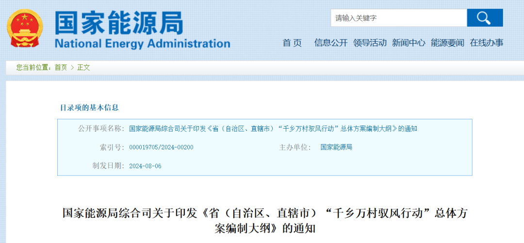 国家能源局综合司关于印发《省(自治区、直辖市)“千乡万村驭风行动”总体方案编制大纲》的通知